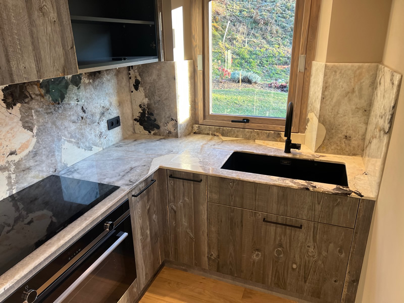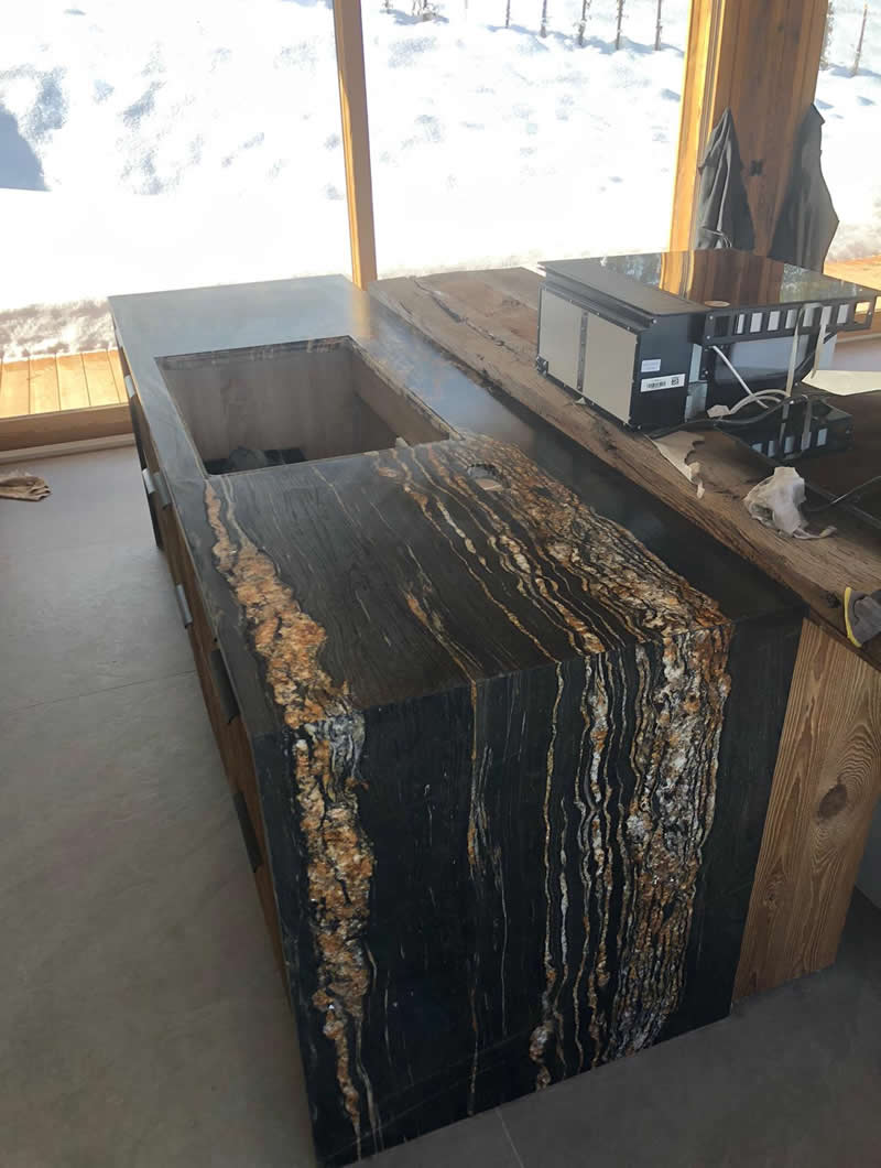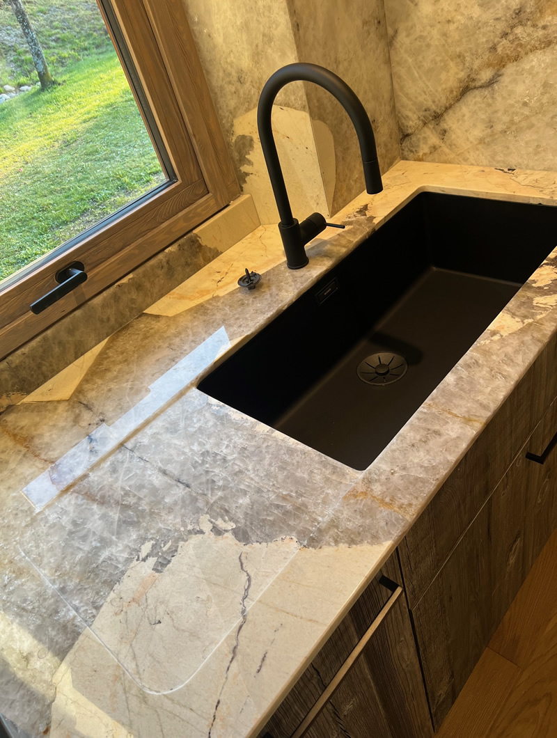 Ainsi, contrairement aux idées reçues, votre plan de cuisine doit être fait uniquement avec un matériau dont la densité et surtout la porosité le permet tels que les granits ou certaines quarzites ayant une densité élevé.
